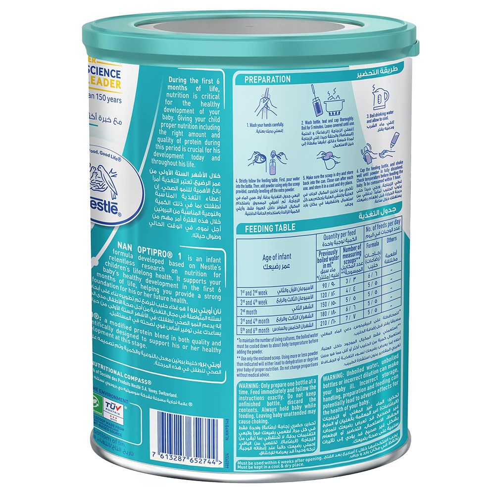 Nestle NAN OPTIPRO Infant Formula Stage 1 – 800g is a premium starter infant formula specially designed for babies from birth up to 6 months. It is developed using advanced nutritional research to support your baby’s healthy growth and development during the most critical early stage of life. This formula features OPTIPRO, an optimized protein blend that provides the right quality and quantity of protein to support overall development while being gentle on your baby’s digestive system.